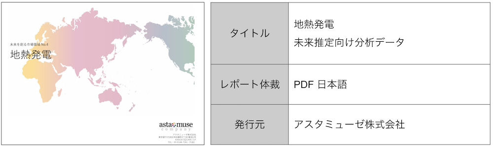 本レポートでは、近未来に、世界的な脱炭素化の流れに伴う再エネ価値の更なる高まりにより、地熱発電開発が加速する地熱発電について、
