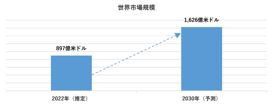 2022年には推定897億米ドル だったものが、2030年には1,626億米ドル になると予測している。