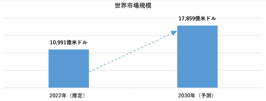 2022年には推定10,991億米ドルだったものが、2030年には17,859億米ドルになると予測している。