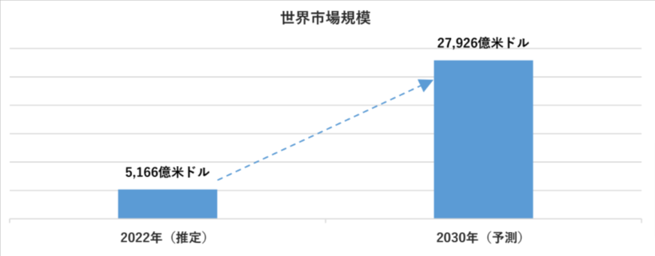 2022年には推定5,166億米ドル だったものが、2030年には27,926億米ドルになると予測している。