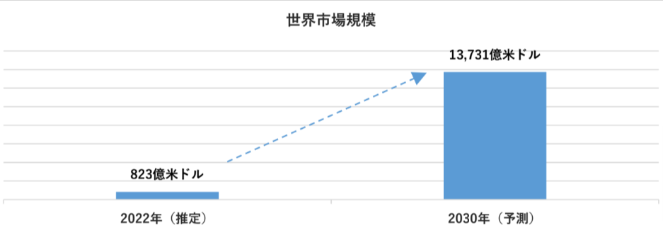 2022年には推定823億米ドルだったものが、2030年には13,731億米ドルになると予測している。