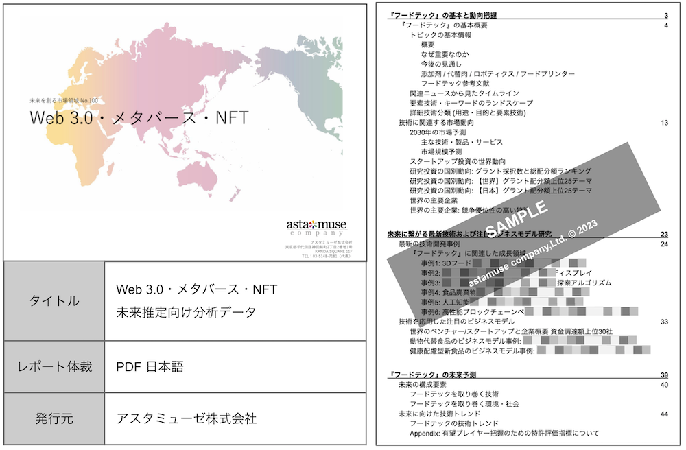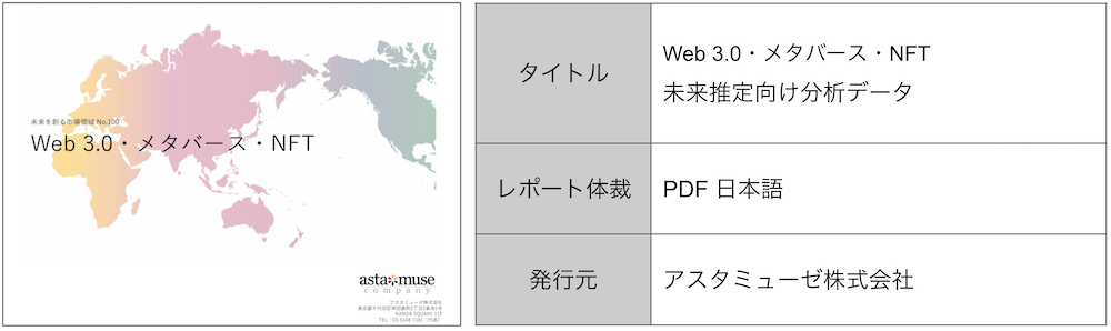 本レポートでは、Web 3.0・メタバース・NFTにおける最新の技術開発事例を紹介している。