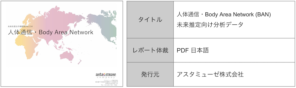 本レポートでは、人体通信・Body Area Network (BAN)における最新の技術開発事例を紹介している。