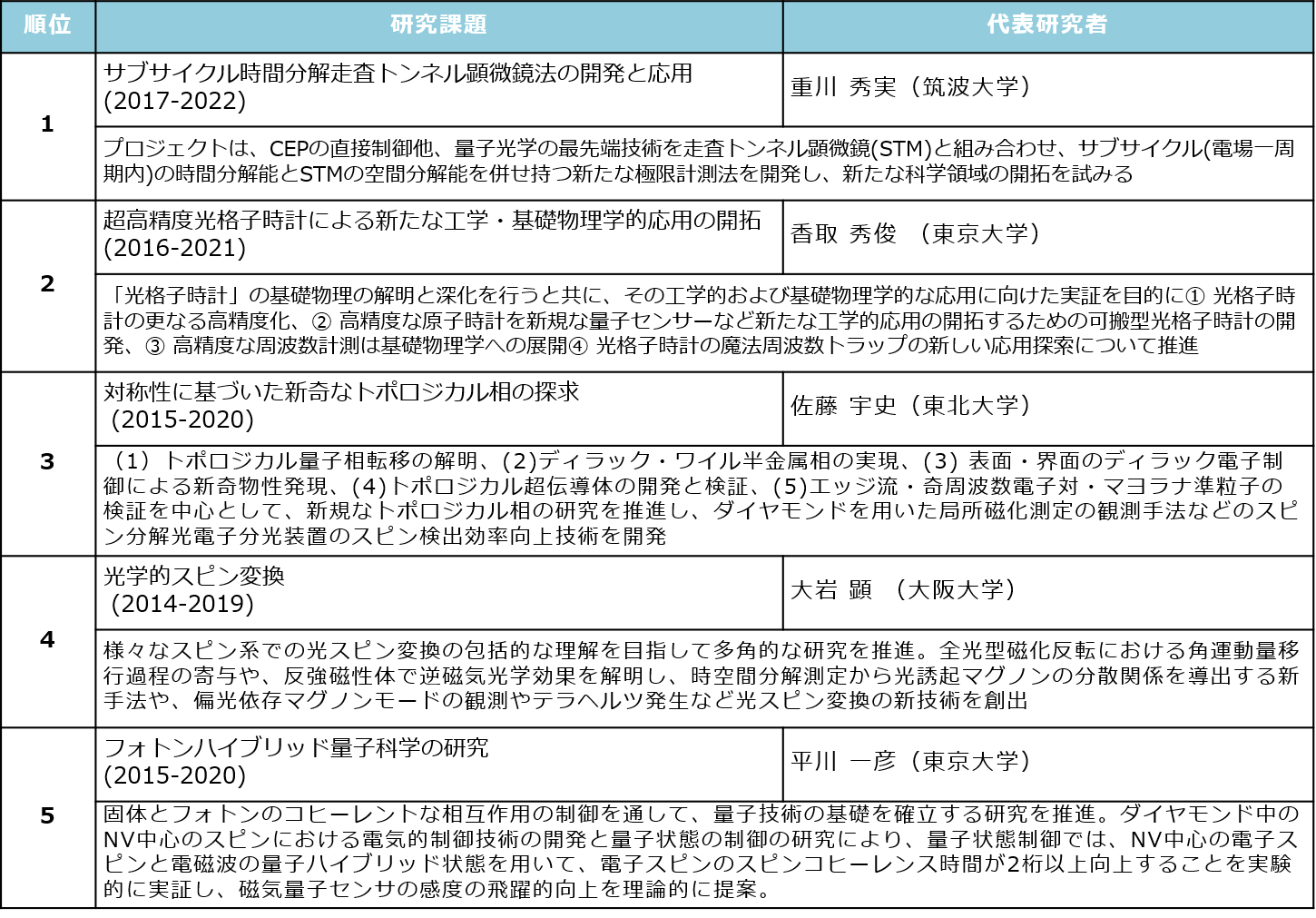 (2)「光量子計測技術」グラント資金流入上位5研究内容