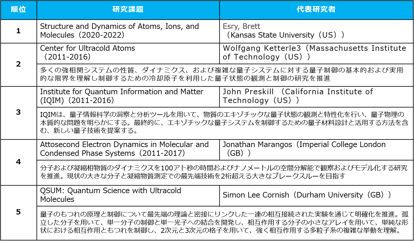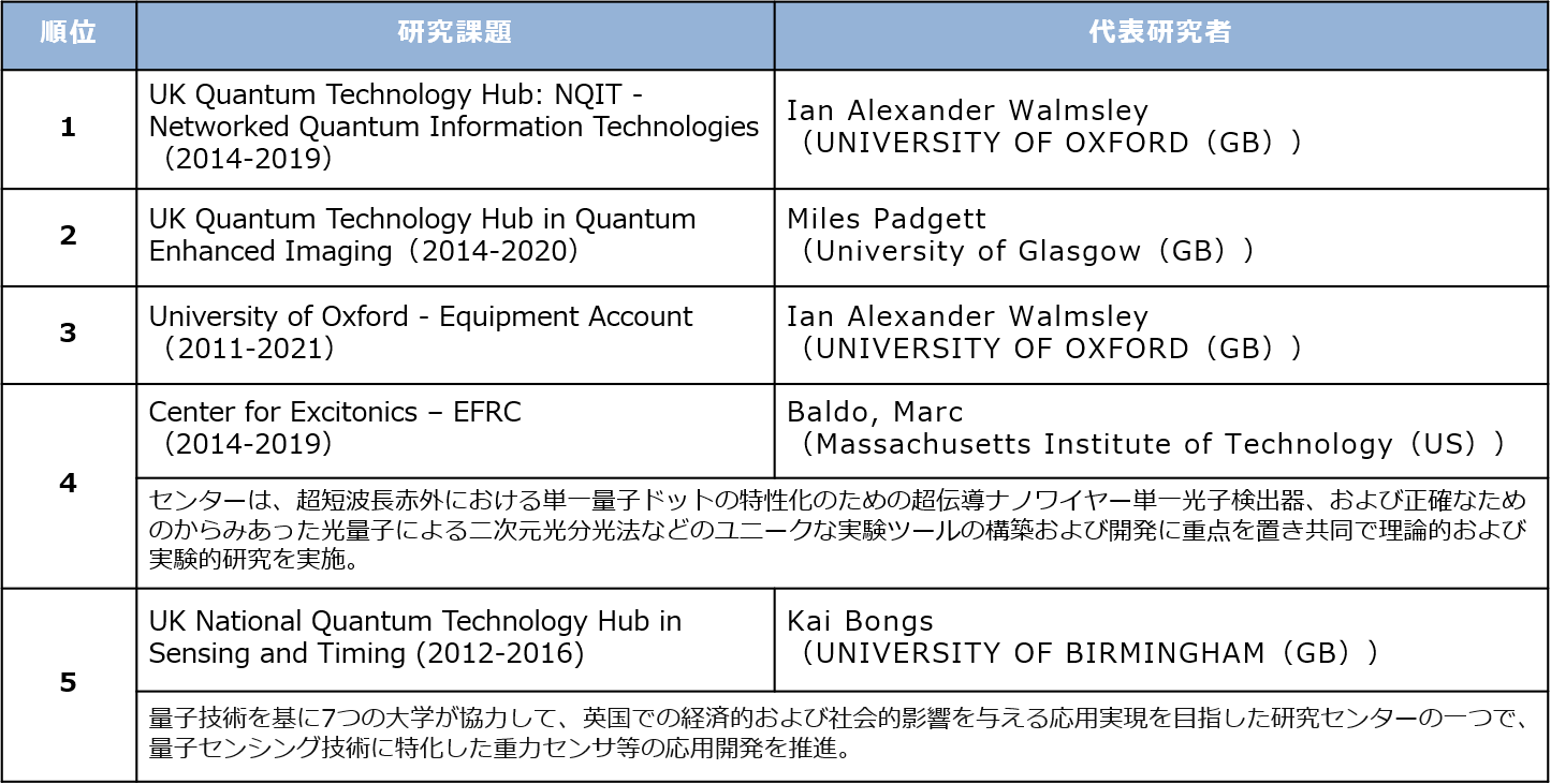 (3)「量子計測基盤技術」グラント資金流入上位5研究内容
