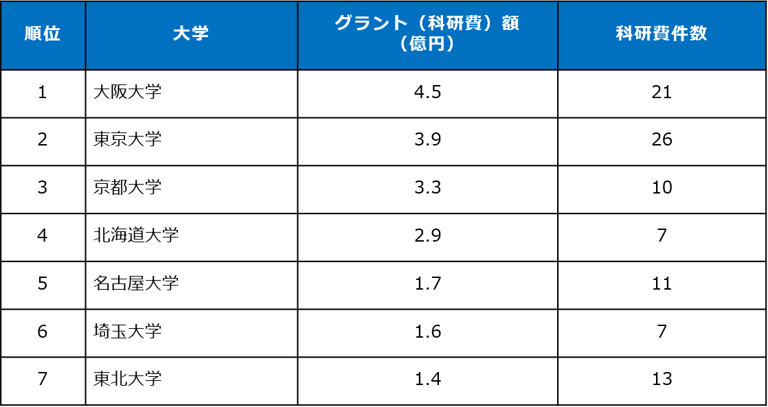 「量子通信・量子暗号・量子中継・量子ネットワーク」グラント(科研費)資金流入額上位7機関(日本)