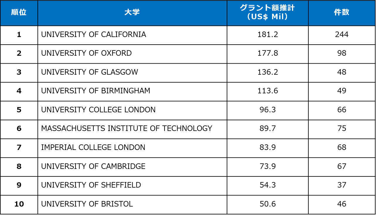 「量子材料・量子科学理論・量子生命科学・量子派生技術」グラント資金流入額上位10機関(世界)