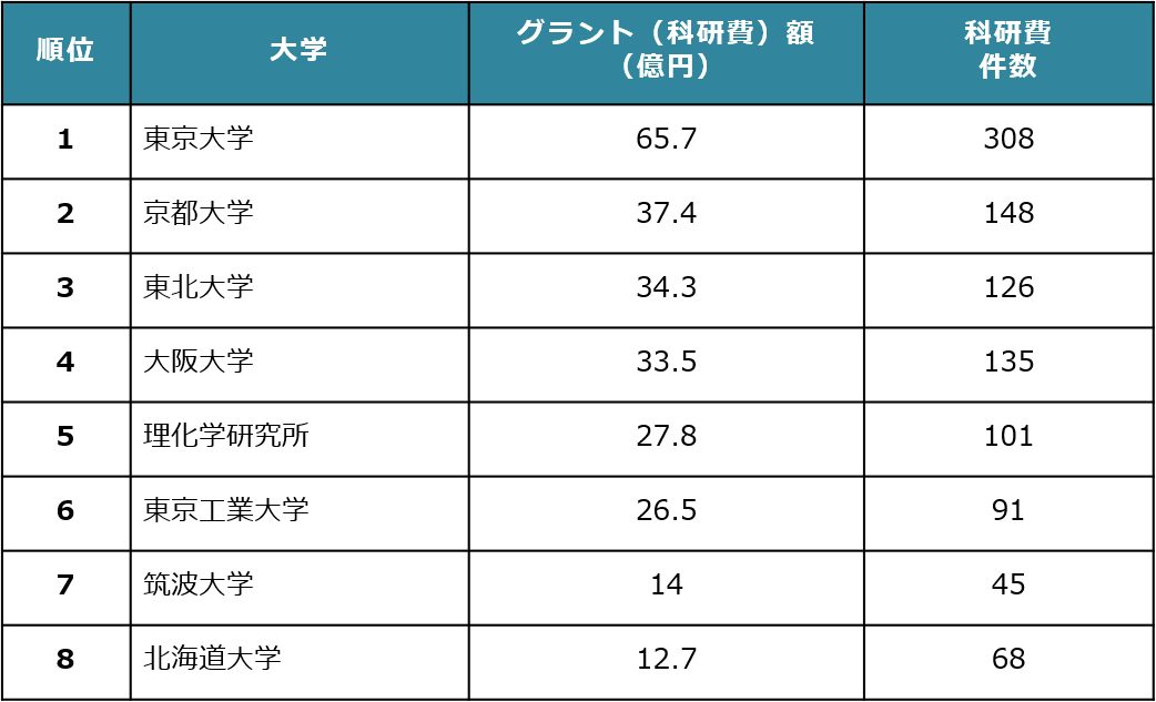 「量子材料・量子科学理論・量子生命科学・量子派生技術」グラント(科研費)資金流入額上位7機関(日本)