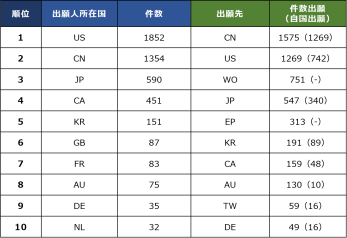 出願済み特許に見る各国の技術動向
