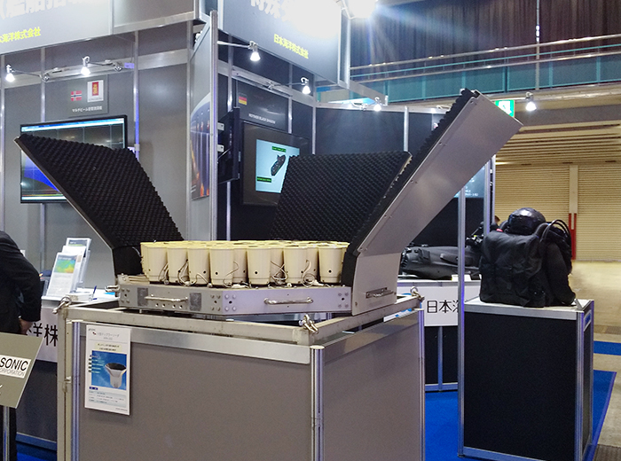 左から波の高さと流れの速さを測る「海象計」、潮位(水位)を測る「デジタル式フース型検潮器」、波の高さを測る「超音波波高計」。数々の優れた製品をアジア諸国でも手の出る価格で拡販していくことが構想されている。