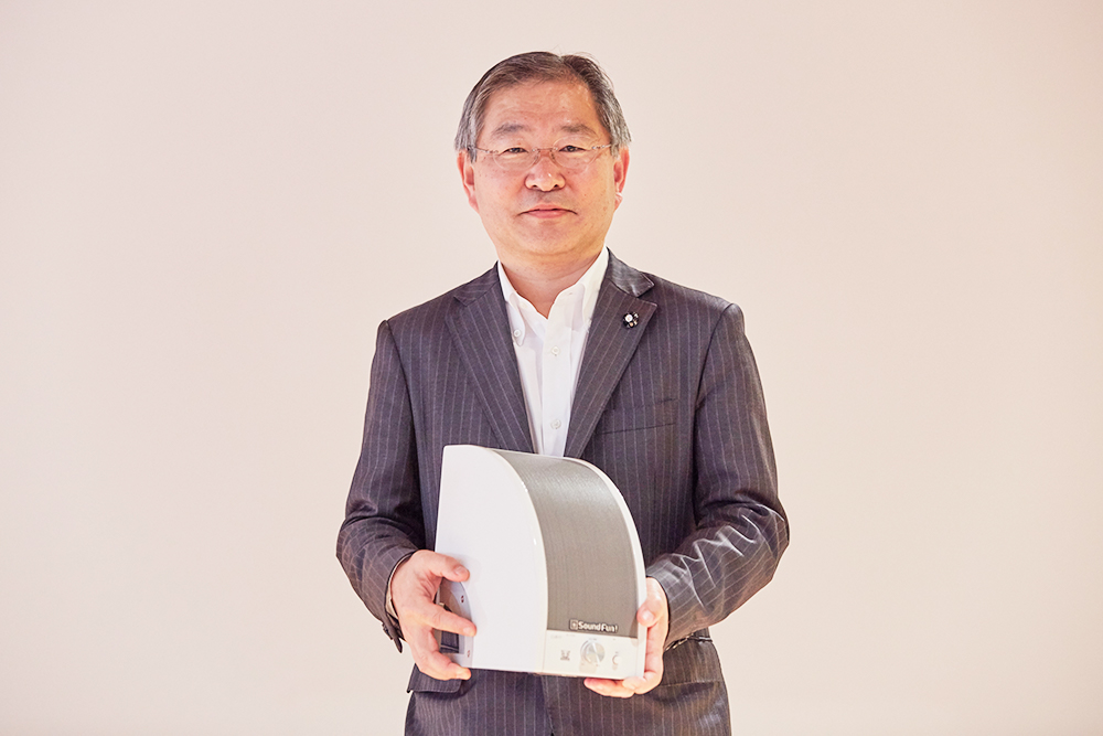株式会社サウンドファンが開発したミライスピーカーは、難聴者の方にも健聴者にも小さな音でも遠くへの聴こえを届ける“音のバリアフリースピーカー”。スマートスピーカーによって変わり始めた「音声」の未来について、代表の佐藤さんにお聞きしました。