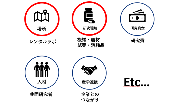 現在の「ラボナビ」は購買を通じた1つめの「研究環境」の提供と位置付けており、2つめの「場所」という点で、いまお話した「日本全国に、研究サポートが充実したレンタルラボを創る」に取り組みます。
