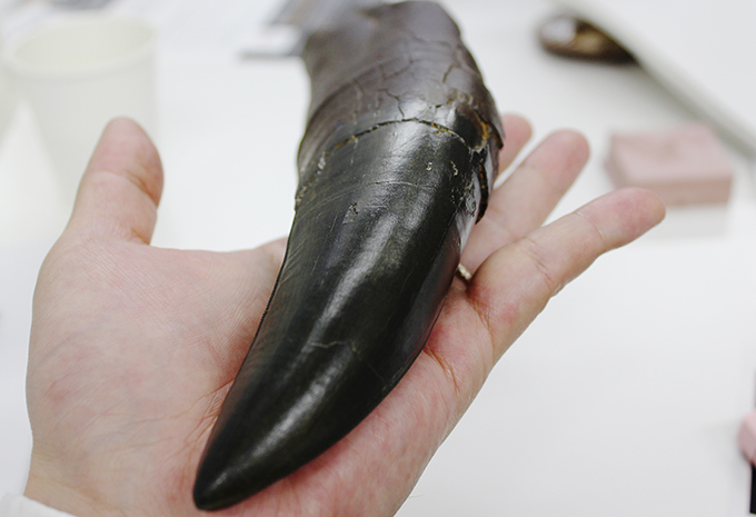 ――ああ、実物に触ると印象が変わります。ガラスケース越しに化石の展示を見るのとは大違いですね。