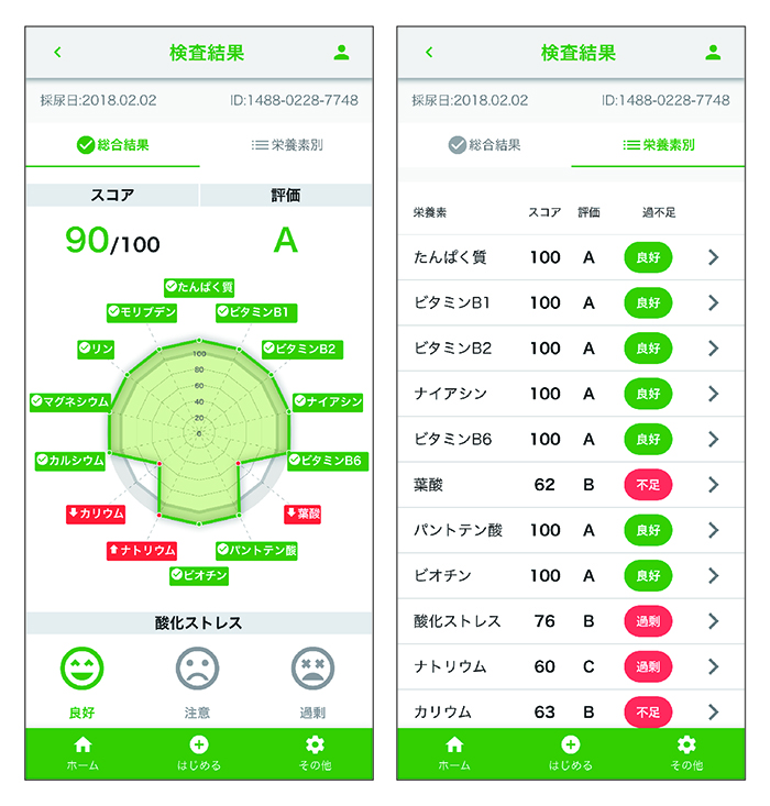 自宅で手軽に栄養検査ができるサービス『VitaNote』。検査キットを取り寄せて、朝一番の尿を採取したらポストに投函。数日後にスマートフォンやPCのマイページから栄養検査の結果を閲覧できるという仕組みです。