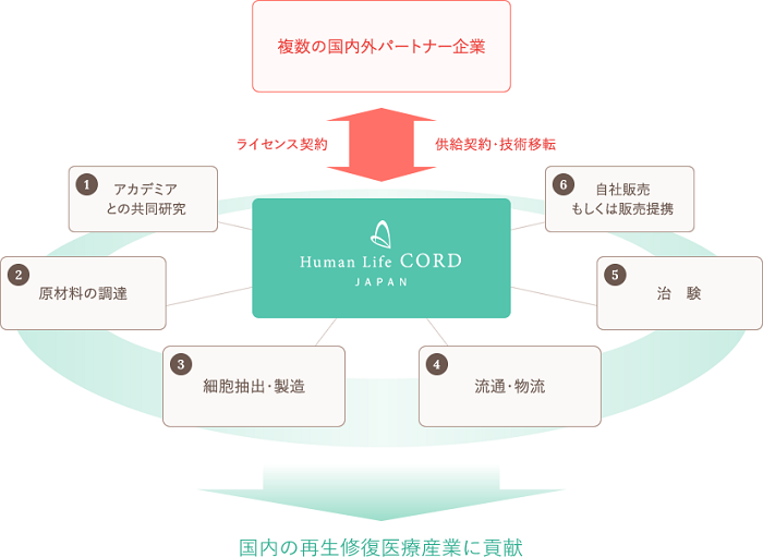 お産後に廃棄される臍帯を必要な人へ“つなげ”(“コード”)、一人でも多くの人の心豊かな生活(“ヒューマンライフ”)に貢献する。われわれは、臍帯という最も若い生まれたての細胞を活用することでそれを実現します。