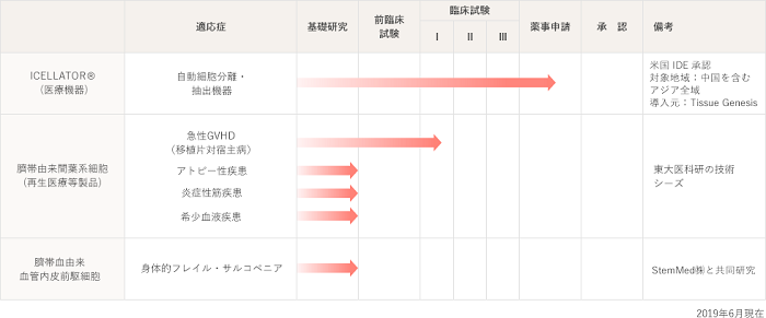臍帯は生まれたばかりの赤ちゃん側の組織で最も若い細胞といえます。細胞自体も活性が高く増殖能力も高いため、通常の細胞培養で半年かかる期間も2週間で済んだり、現在は廃棄物として扱われるものなので購入する必要はなく、これを利活用することで、製造原価は現在市販されている骨髄由来の製品と比較しても抑えられます。
