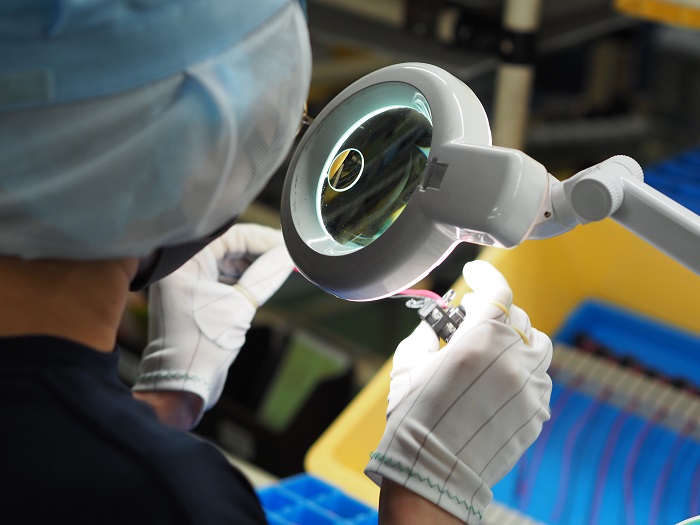 納品に至るまで何重にも検査体制を敷いて、確実に安全・安心な製品とさせること。これは常々、当社社員へ伝えているメッセージです。精密機器の不具合は、ひとつ起きると原因追及にものすごく時間がかかります。不具合原因の解明、対策案の構築、新しい製造ラインの設計や検査体制の確立と、とにかく時間がかかります。誰も手を抜いて仕事していないのに、会社としても当事者としても辛い。製造原価を安く、利益を追求する。その話をする前に、とにかく品質重視。徹底して高い品質を保てるようになれば、利益は後からついてくる。そう思って品質重視の製造体制を作っています。