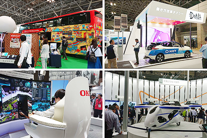 こちらはDeNAが提唱する働き方改革タクシーやNECの空飛ぶクルマの展示です。昔に想像していた「未来」がすぐ近くに来ていることを感じ取れます。